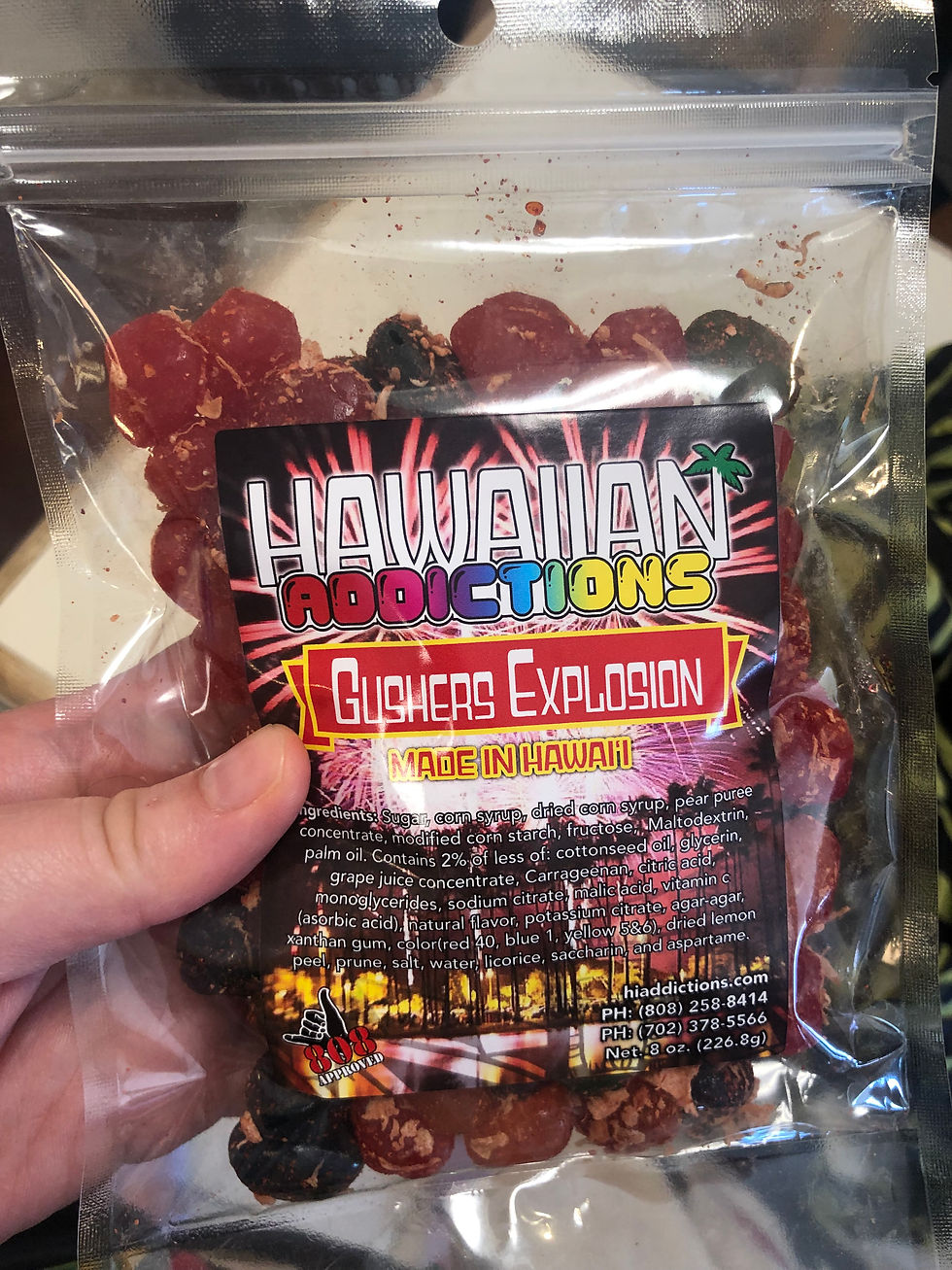 Gushers Explosion from Tamura's. I wish they were more sour but still good. A million kinds of sugar.